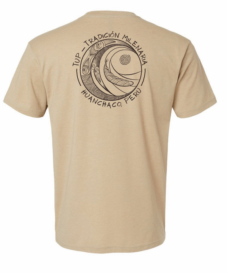 This design is screen printed on a Next Level CVC 6210 T-Shirt. The 6210 is a tailored fit. There is very little to no shrinkage after multiple washes due to the 60% cotton / 40% polyester blend. It is soft, lightweight and durable. The design on this shirt reveals the inspiration for CABALLITOS. It features the Caballito de totora and its ties to the ocean. Elements in this design include fishing nets, fish, the caballito de totora, and of course, waves.